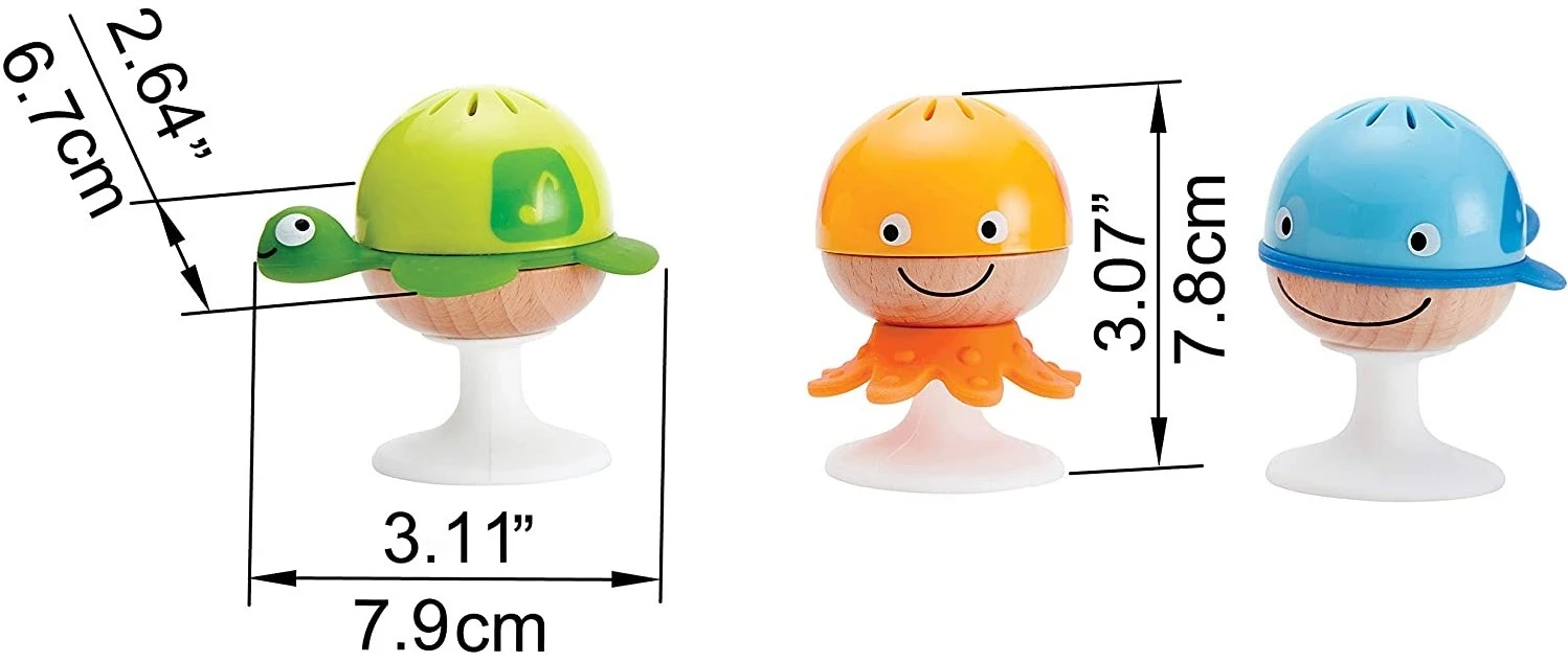Hape Saugknopf Rasselset | Drei Wassertiere mit Beißringelementen | Lernspielzeug-Set für Babys