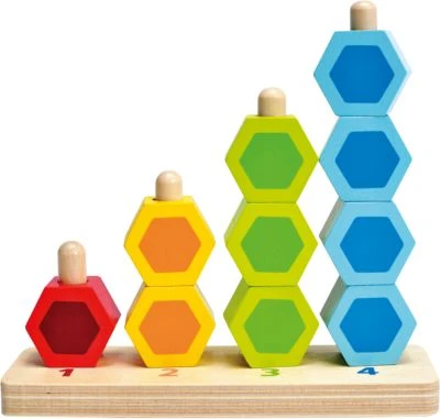 Mit diesem farbenfrohen Zähl- und Steckspiel kannst du schöne Türme bauen und gleichzeitig